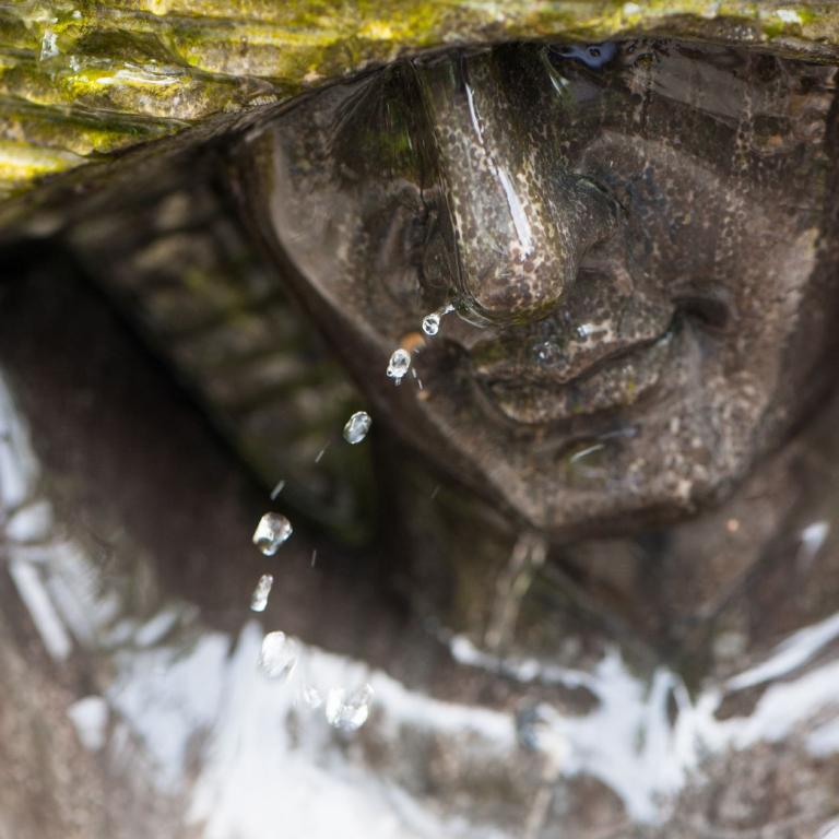 Die wunderschönen, sinnlichen Formen werden durch das fein herabrieselnde Wasser noch betont und in ihrer Wirkung verstärkt.