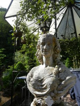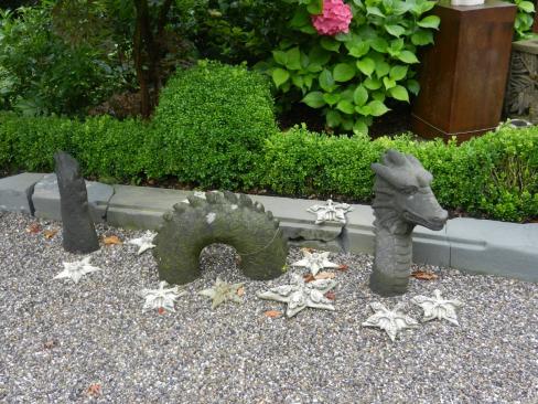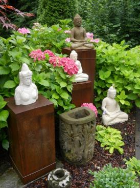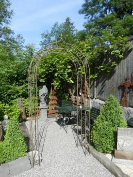 In unserem reich gestalteten Mustergarten finden Sie viele antike Gartenmöbel (Gartentische/ -stühle), Brunnen, Skultpuren und andere Dekorationsobjekte.